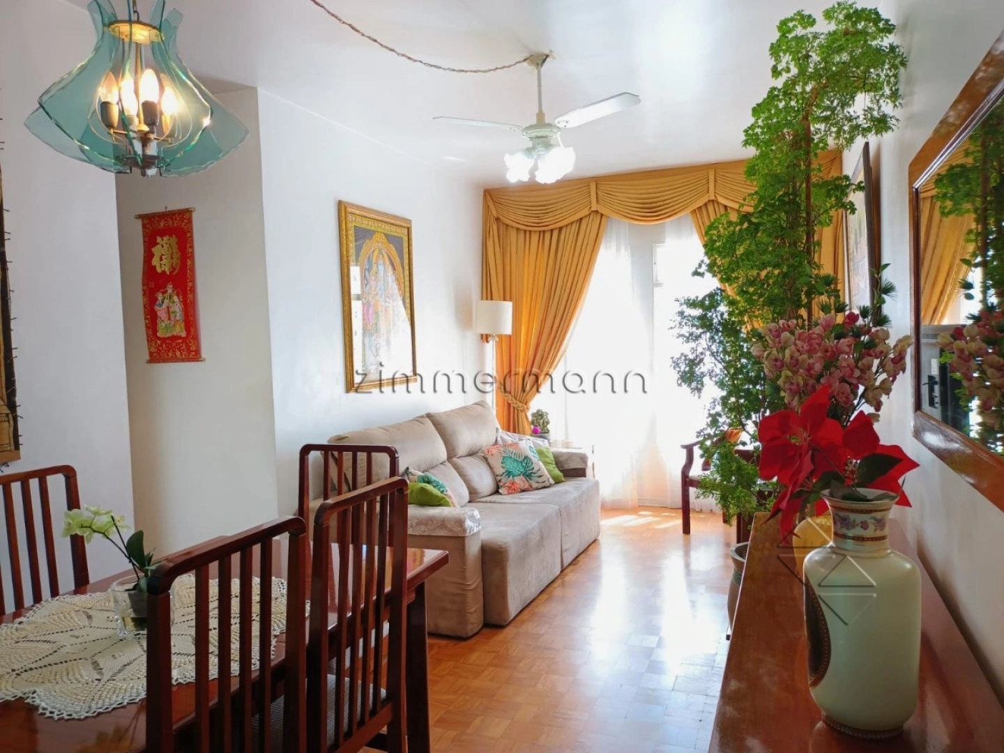 Apartamento de 100m² em andar alto com iluminação natural, bem ventilado e ensolarado. Vendido mobiliado, incluindo camas, eletrodomésticos, mesa de jantar com cadeiras, TV, rack, sofá e aparador. São 3 dormitórios, sendo 1 suíte, sala com 2 ambientes, banheiro social, cozinha ampla, área de serviço com depósito e banheiro.