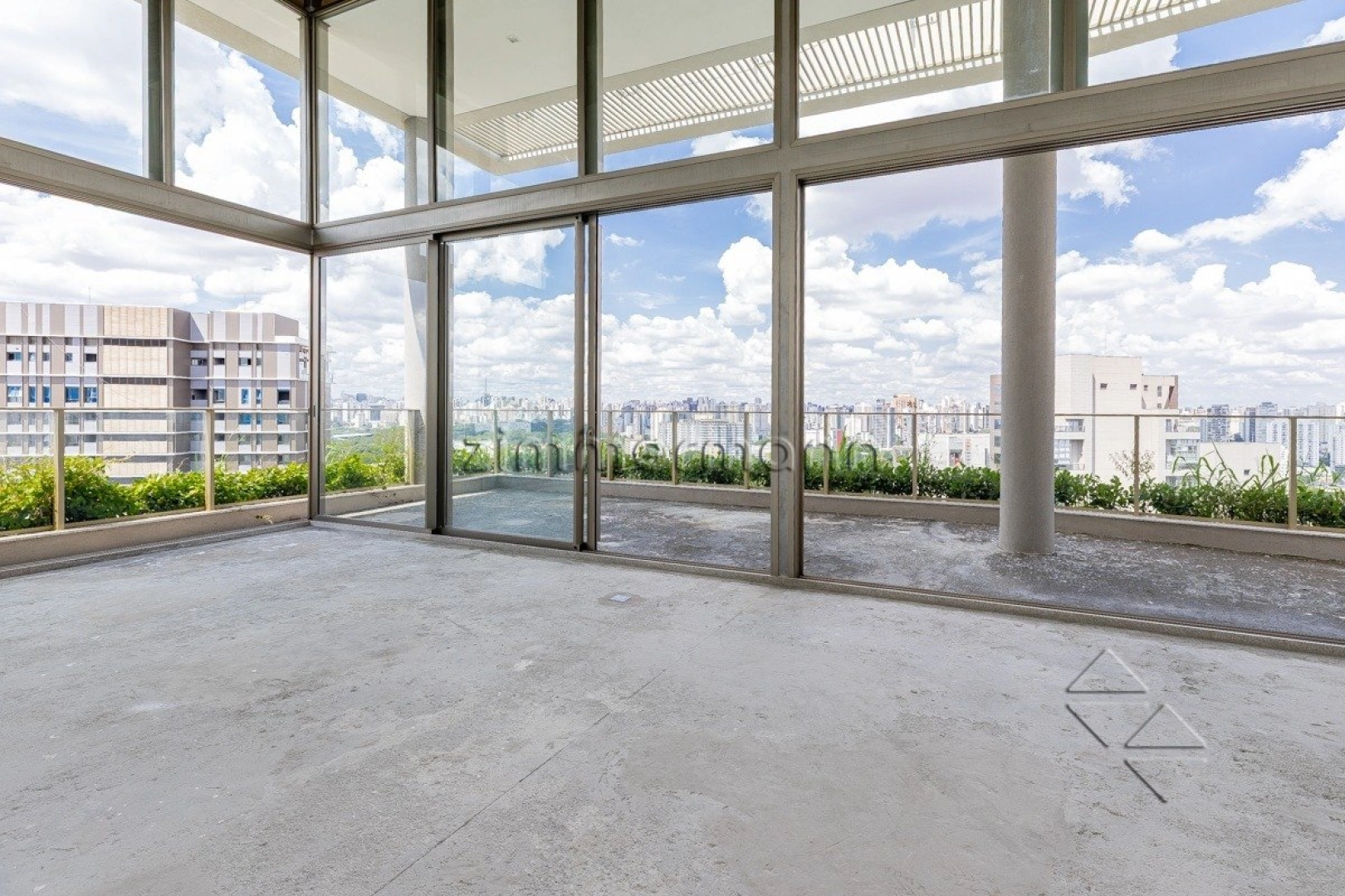 Cobertura de 418m² com vista espetacular para o Parque do Ibirapuera. Elevador privativo, living amplo para 3 ambientes, varanda, 3 suítes, lavabo, cozinha, área de serviço com dependência de serviço e terraço com área gourmet e jacuzzi. Conta com 5 vagas de garagem.